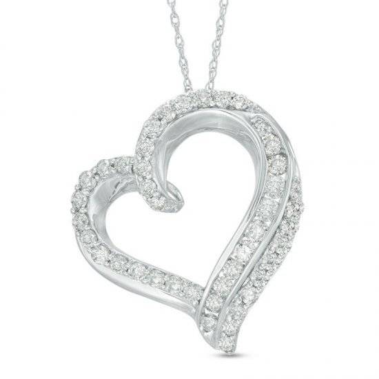 10K White Gold Diamond Double Heart Pendant